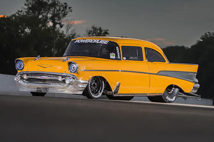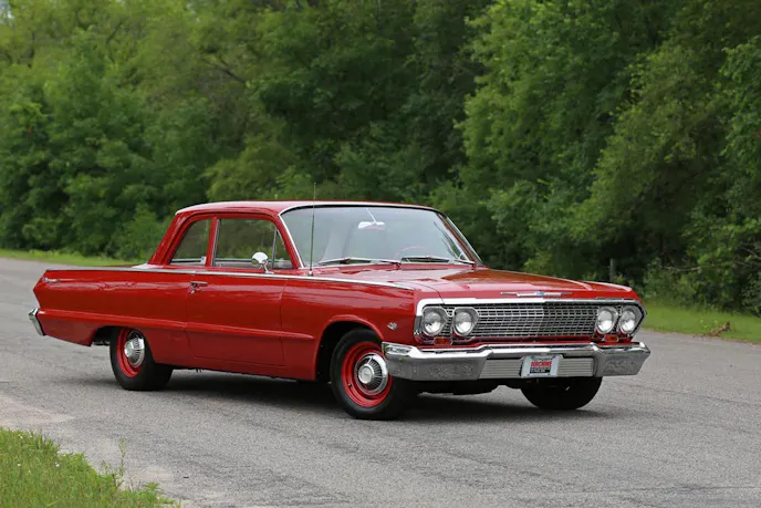 When it comes to this Biscayne, Lyle Lindquist made several upgrades that carry it far from its fleet-anticipated roots. Items like four-wheel power disc-brakes, a factory tachometer, and even an air-ride suspension that gives the car that “just right” stance for any occasion.