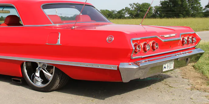 The hardtop 1963 Chevy Impala, with its convertible like roofline, crisply tailored flanks, and pointed fenders, is truly an American icon. Automotive enthusiasts drool over 1963 Impalas today and it is a popular creative canvas for both the hot rod and lowrider genres. One such hot rodder that took to liking the 1963 Impala’s popularity within the custom automotive community is United States Air Force veteran Chris Tetzlaff of Glasgow, Kentucky.
