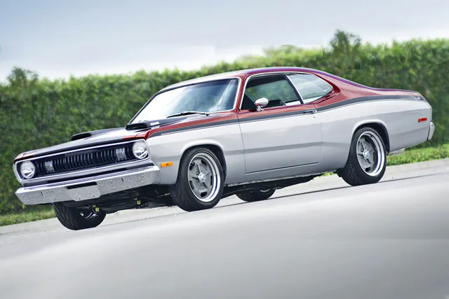 Even the non-Mopar fans have to admit that this “Twisted” 1972 Duster is a great addition to the resto-mod stable at Classic Industries, built for SEMA 2011. Powered by a modern Gen III 426 HEMI, this Duster breathes new life into a never-aging body style that looks good on the road and at the strip. Changing gears is done by a TCI 6X 6-speed automatic and is controlled by an EZ-TCU, and even pays homage to the push-button transmissions of yore with a push-button console by Mastershift mounted just to the right of the Dakota Digital instruments.