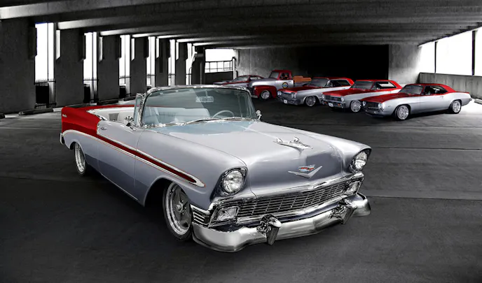 We, as well as many others, fell in love with the ’56 Chevy at SEMA. When we saw that this Bel Air and the other five resto-mods were all heading out to the Grand National Roadster Show on January 25-27 in Pomona, California, as part of Classic Industry’s 35th Anniversary celebration, we knew we had to share these beauties with you.