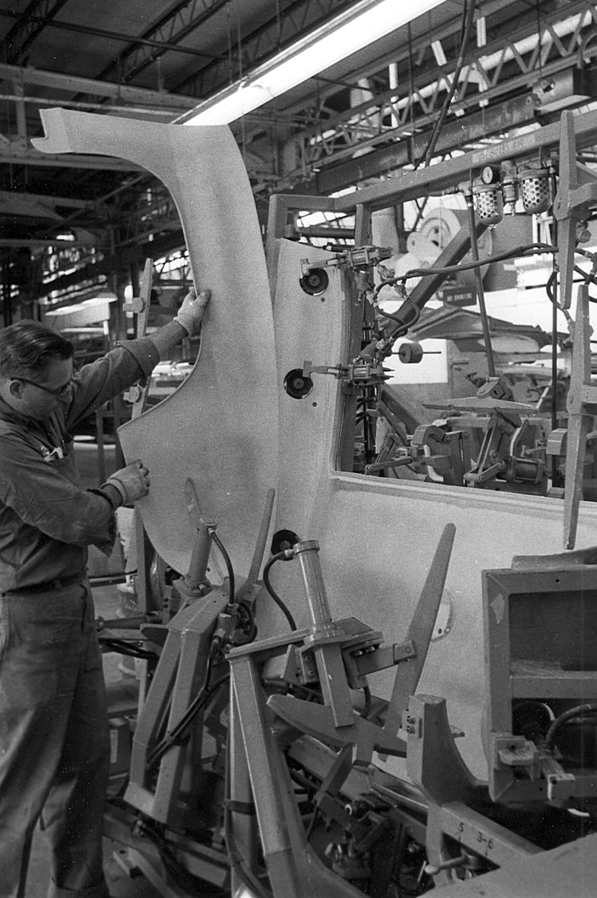 GM has a strict rule about photographing production lines. The fact these are staged all but verifies they are indeed GM photos. Dating the run of known pilot-line Corvettes for 1963 reveal these photos were taken sometime in September of 1962, as records show pilot-line Corvette number 15 was built on September 17, 1962.
