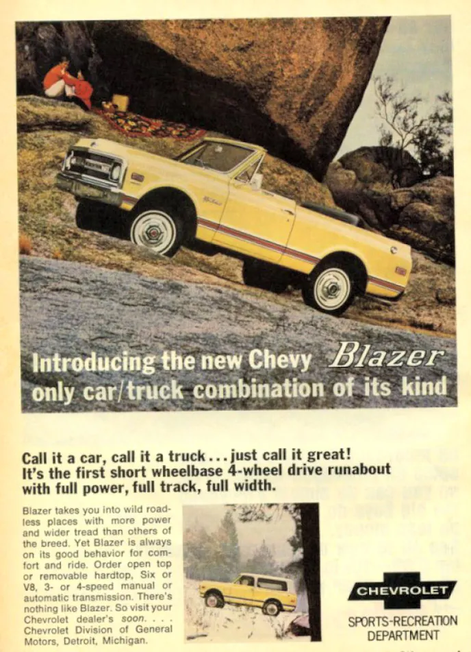 Fans of off-roading usually like to fancy themselves as rebels, not actually conforming to what many social circles consider acceptable. In 1969, Chevrolet fed that desire when they created a four-wheel-drive SUV called Blazer. This vehicle possessed perfect off-road capabilities, and was much larger – which made it roomier, and delivered more power than any of its competitors.