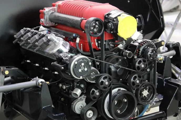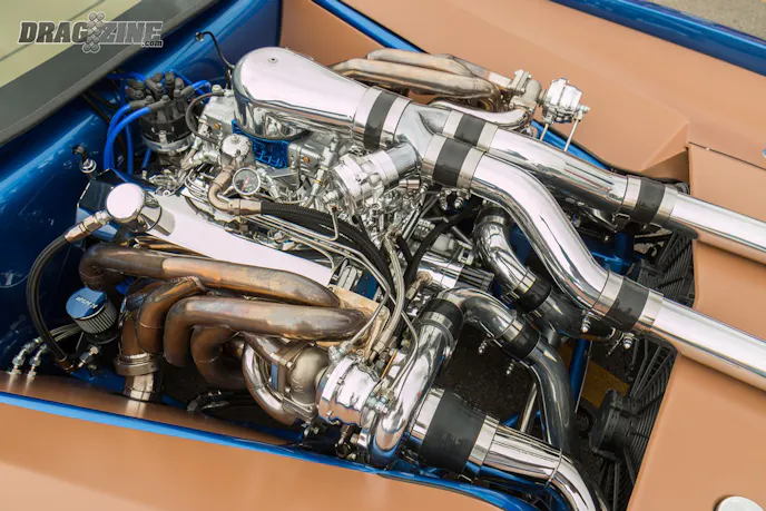 A 540 cubic-inch big-block Chevy engine, which Lutz built in collaboration with Mark Vinson of Vinson Race Engines, is topped with Pro-Filer heads, an intake by Pro-Filer and Boninfante Friction, and Lutz relies on a Big Stuff 3 engine management system for tuning.