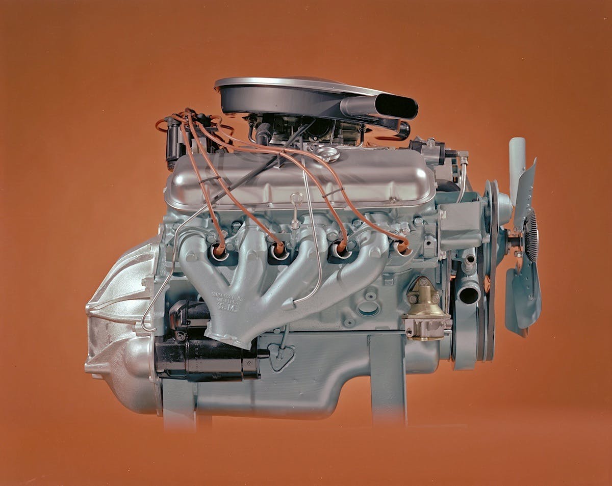 Howell: “The Mark I, the 409, was a design where the block deck was not perpendicular to the bore. The cylinder block was machined on a slant to the bore, and the head was just a flat piece of metal with a couple valves in it. It wasn’t a bad truck engine, but it was a design that engineering staff came up with and it was a flop.