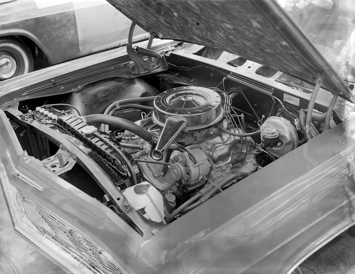 Howell: “The 409 was not a very successful NASCAR racing engine. It was originally designed as a truck engine. Even though the corporation had forbidden our participation in automobile racing at the time, Pontiac was doing it out the backdoor. I don’t think that there was any Buick or Oldsmobile performance going out. Chevrolet didn’t want to get left behind, and we had engineers and people in charge that felt performance was something we needed to keep abreast of. Around 1960 or ’61, they decided to design a new engine to incorporate everything that they thought they knew. They developed that engine in 1962, and it was called a Mark II.”
