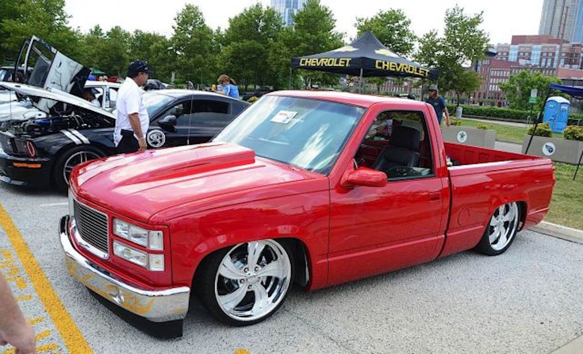 Car shows are a great way to find out what the current trends are. Flat black paintjobs, staggered wheels with huge lips on the back, and modern tech in old cars are just a few of the trends that are beginning to fill the shows. However, these same shows are also a great place to find that one ride that just makes you stop in your tracks and say “Wow!” Such is the case with Mike Hatfield and his Goodguys award-winning 1998 GMC Sierra 1500. Coming out of Decatur, Alabama, this truck is definitely unique. What started 10 years ago as a side project ended in this beautiful red truck. It started when Mike was looking for a project to work on. He had only one pre-requisite: It had to be red. As soon as Mike laid eyes on this red GMC, he knew he absolutely had to have it. With the blessing of his wife Andrea, Mike set out to build one of the cleanest and most unique trucks in the South.