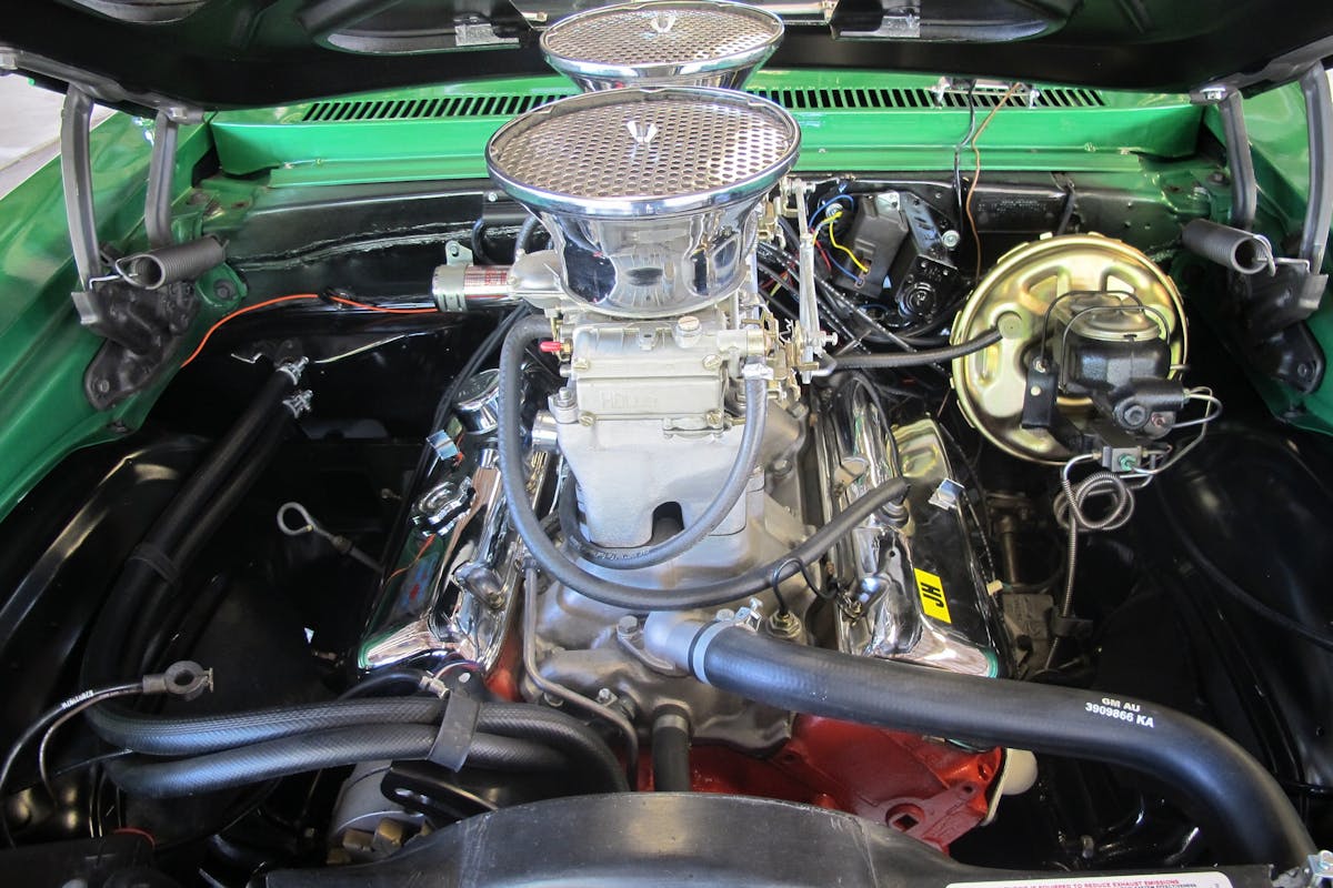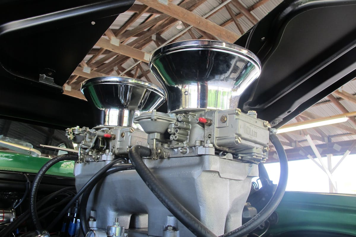 The underside of this blast from the past is all old school. Braking is handled by factory disc and drum binders, the front suspension is stock, and the rear suspension features ladder bars and Hurst drag shocks. It might not be built to handle the twisty roads, but a more fun ride will be hard to find.