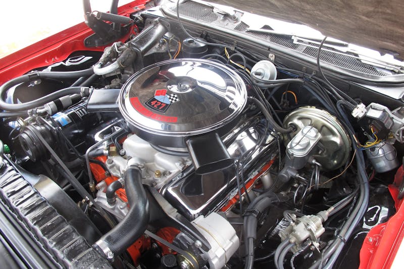 The engine in this car is the 385-horsepower version that has been rebuilt as close to factory specs as possible. The .030-inch overbore supports cast, TRW pistons creating a 10.2:1 compression ratio. In factory form, the L36 427 engine featured a camshaft with a duration of 214/218 at .050-inch lift. Valve lift was a conservative .461/.480-inch. The replacement specs out at .461/.480-inch lift, and 268/274 degrees duration at .008-inch lift. The cast, oval-port heads support the stock intake and Quadrajet carburetor. Behind that is the aforementioned Turbo 400 connected to a Posi-filled 12-bolt with 3.08 gears. The combination makes this a true, muscle-bound family cruiser.