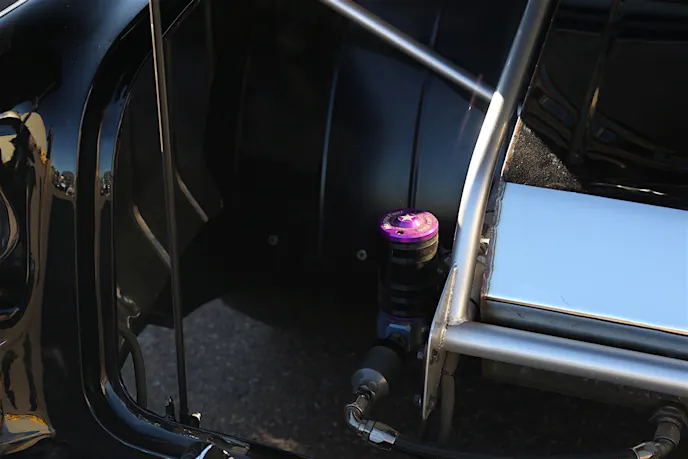The supercharger is 27 percent overdriven and is fuel-injected on the intake manifold and on the injector hat, according to Darren. It also has a 20-amp magneto and the engine is mated to a Lenco lightning rod shifted four-speed transmission and a three-disc clutch. “You don’t have to work the clutch or anything inside, just simply pull the levers and it will shift into the next gear in an instant,” he said.