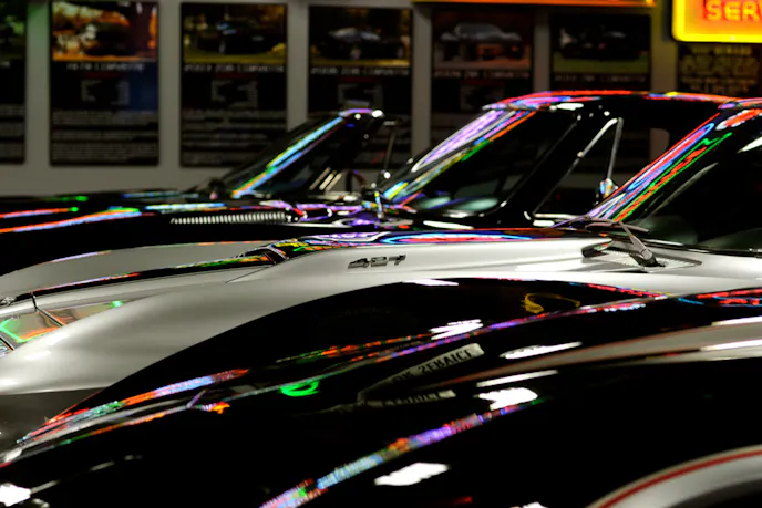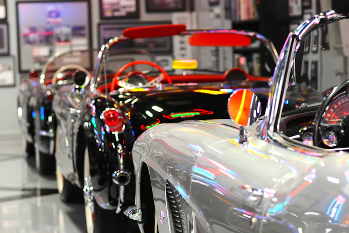 Michael mentioned this is the only Corvette in the collection that features a six-cylinder engine, and an automatic transmission. This is because that was the only option offered in 1954. Its black paint is stunning, and also a rarity among first-generation Corvettes.