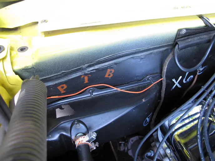 The issue with the Muncie shifter was that it was mounted to the crossmember of the car, while the Hurst shifter mounted directly to the transmission. Heavy acceleration, would cause the Muncie shifter’s linkage to bind, while the Hurst shifter moved with the transmission, keeping linkage geometry in check. Other stop-light highlights on Robert’s ride are the rear spoiler (RPO D80) and the console (RPO D55) nestled between the black factory bucket seats. Also, the 14×6 Rally wheels are adorned with F70-14 Goodyear Polyglas bias-ply tires (RPO PL5).