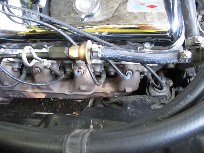 Robert’s car left the factory with those lightweight heads atop the chosen L78 engine, and inside the engine, is a bevy of go-fast goodies that were shipped through dealers to enthusiasts. They included the aforementioned steel crankshaft held in place by the four-bolt block, 11.0:1 compression pistons, rectangular-port heads, and a solid-lifter bumpstick to aid the high-winding expectations of this high-performance engine. The engine inside Robert’s ride was modernized a little bit with a Crane Cams solid lifter variety with .544- and .567-inch lift, and 238/248 degrees of duration at .050-inch lift. To pull the engine’s performance even a little further from both stated ratings, the aluminum heads and intake have been port matched to get the most flow. Not necessarily aiding in performance, but one item that is many times overlooked when doing a full-on restoration is the air pump system that Chevrolet burdened each engine with when they left the factory. This car has the complete, working system, but what air system didn’t come with this engine, was air conditioning (RPO C60), as Chevrolet didn’t allow A/C with their solid-lifter equipped engines.
