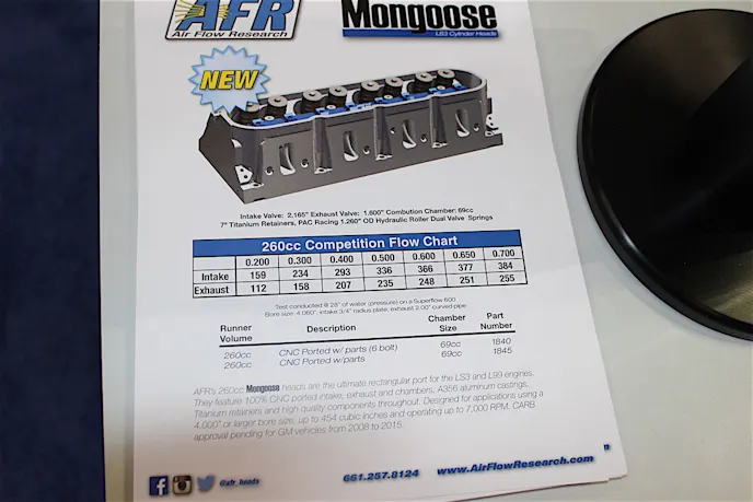 “Our Mongoose line in the past was just our LS1, LS2, LS6—anything cathedral port, whereas these new heads are rectangle port and are built specifically for the LS3,” said Chris Sperling, director of engineering and technology at AFR. “They will fit anything with a 4.00-inch bore or larger and use the four or sixth bolt mounting pattern, depending on which set you go with.”