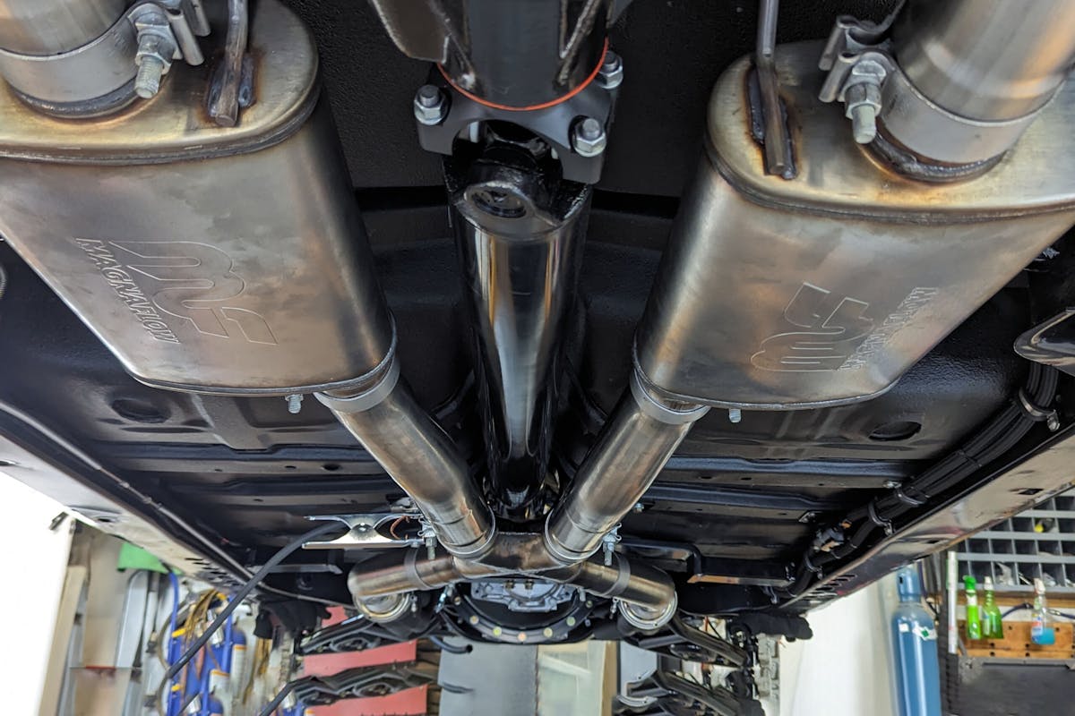 Every area of the Chevelle has been carefully massaged back to perfection. The rear 12-bolt was sandblasted and powder coated. It is mated to a Denny’s driveshaft and received brand-new, stainless lines. All the fuel lines are made out of black braided hose and AN fittings. There is also a modified three-inch Magnaflow exhaust to help the big-block engine breathe.