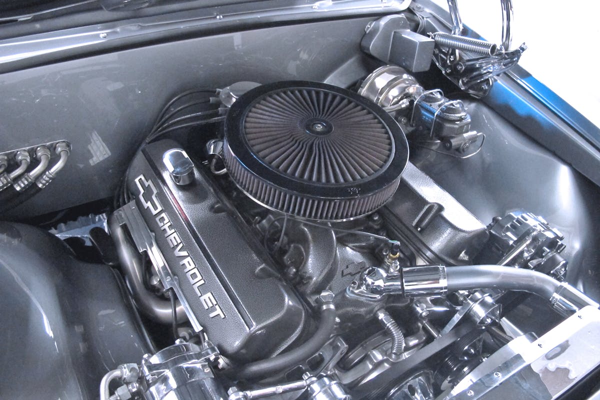Although the ’66 SS396 Chevelle was available with a potent big block when new, this project was sans any powerplant when it arrived at the Stewart garage. Since he was starting from scratch, James — like any true gearhead — wanted more power. For that reason, he decided to use more cubic inches than was the factory offering in this car — 427 of them. Inside the Merlin block is a stock, steel crankshaft and heavy-duty H-beam connecting rods. Building the compression under the Brodix heads are a set of JE pistons squeezing the air and fuel to a ratio of 11.0:1. Finally, a COMP Cams roller stick, Chevrolet Performance intake, and Holley Sniper EFI were thrown into the mix. To say this is a stout mill is an understatement.