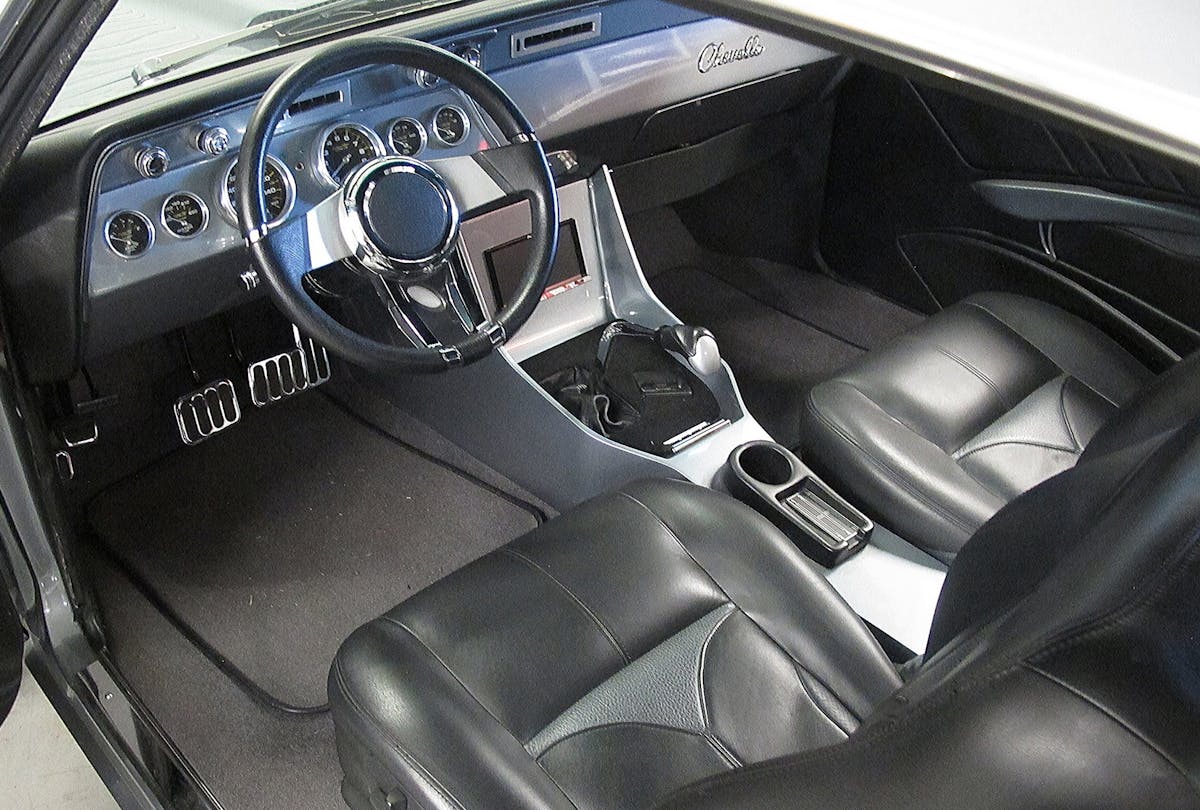 James wanted to retain the basic look of the ’66’s exterior, and that was simple. However, he wanted to “modernize” the interior to give it an updated look and add a little comfort that a stock ’66 interior. To accomplish that, he started by adding a set of late-model seats to the mix. “The seats are power-adjustable units from a Chrysler 300,” says James. The custom dash frame began life as the factory piece, but James took the time to smooth and modify the styling to create a one-off creation. The custom dash face is created with sheetmetal, and once fitted to the car, he then filled the new platform with a bevy of Auto Meter gauges. If you like the console, the hand-built unit houses the manual-gear actuator and a Pioneer sound system.