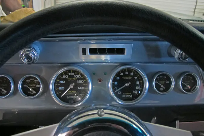 James wanted to retain the basic look of the ’66’s exterior, and that was simple. However, he wanted to “modernize” the interior to give it an updated look and add a little comfort that a stock ’66 interior. To accomplish that, he started by adding a set of late-model seats to the mix. “The seats are power-adjustable units from a Chrysler 300,” says James. The custom dash frame began life as the factory piece, but James took the time to smooth and modify the styling to create a one-off creation. The custom dash face is created with sheetmetal, and once fitted to the car, he then filled the new platform with a bevy of Auto Meter gauges. If you like the console, the hand-built unit houses the manual-gear actuator and a Pioneer sound system.