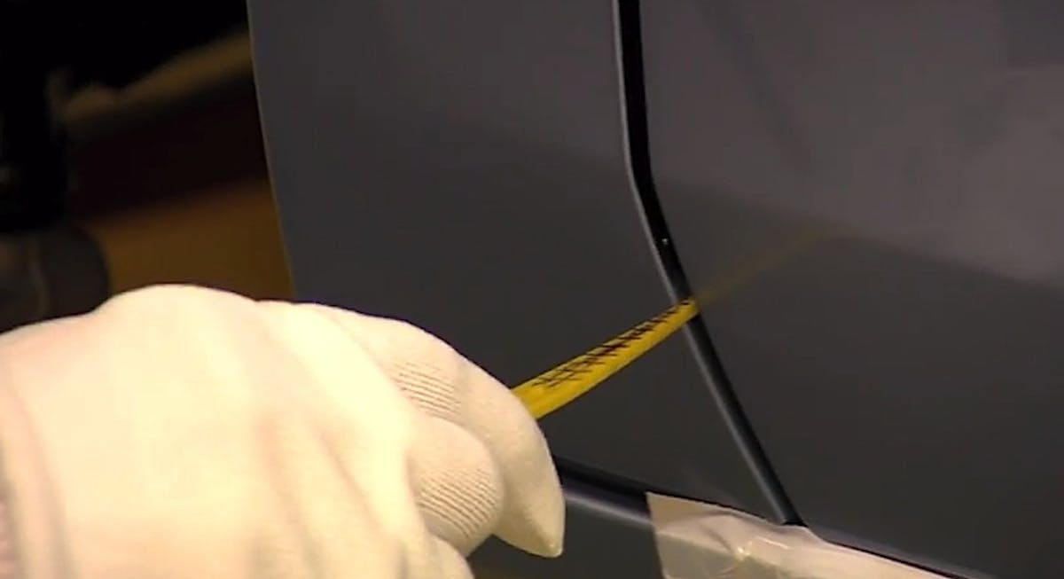 On to the next item, Slotka shows us the gauges that are used to measure the gaps between the door and side panel, trunk and fender, and elsewhere to test how flushed the parts are to each other; no one likes a noticeable gap in a new car, to be sure, nor a lack of one which could lead to chipping and grinding. A velocity meter is introduced next to assess the force needed to fully shut any of the latch-closing parts of the car. As Slotka states, “Nothing is more frustrating than when you go to close your door, and then you’ve got to turn around and do it again.” He says that ideally the effort required is “between 1.1 and 1.3”; in other words, a very slight effort.