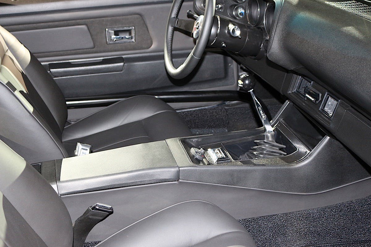 To get all that power to the ground, the stock leaf springs have been ditched in favor of a four-link rear suspension with coilover shocks and 19-inch wheels shod with some serious rubber. Up front, you can find the stock suspension replaced with a coilover kit and rack-and-pinion steering to keep the car nimble, and likely making this one of the best handling classic Camaros, ever.