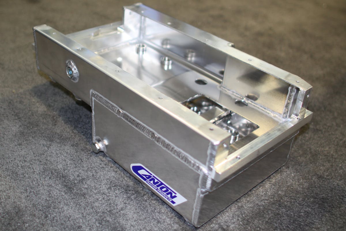 Canton Racing Products brought a cool new oil pan to SEMA and we got all the details when when we stopped by and had a look see. The display was full up with all sorts of goodies and as we lingered, we were amazed at all the dry sump, oil pan eye candy to peruse.