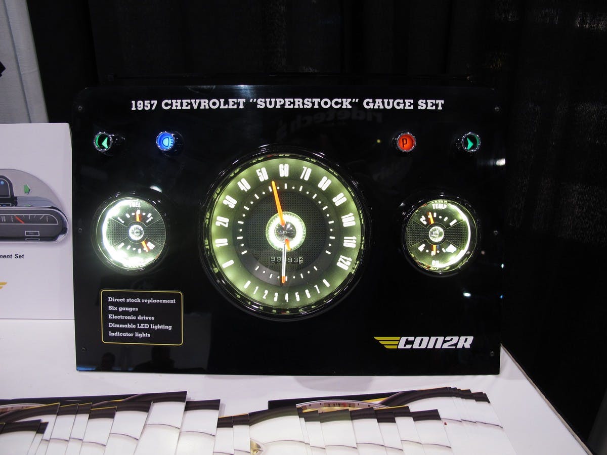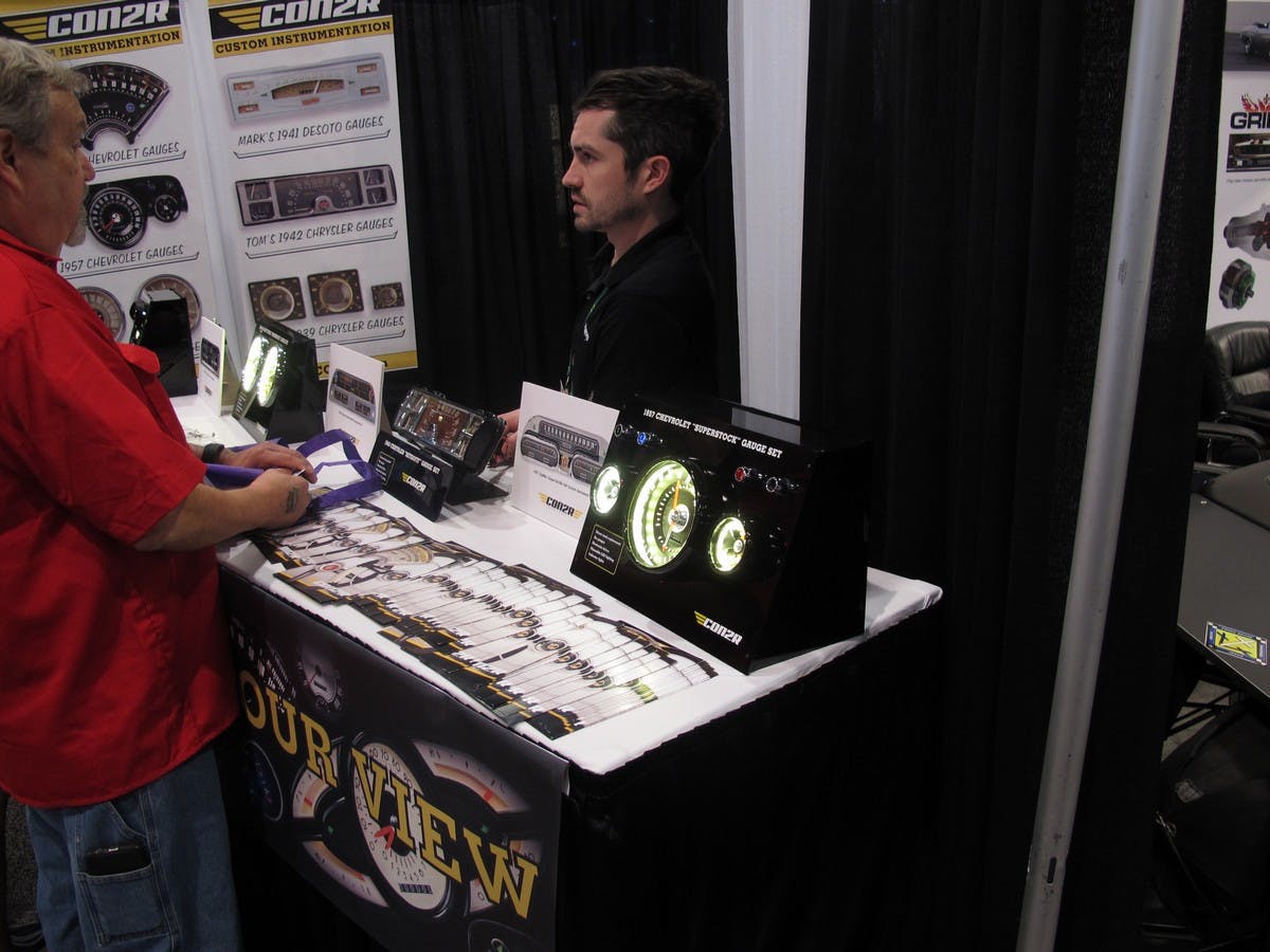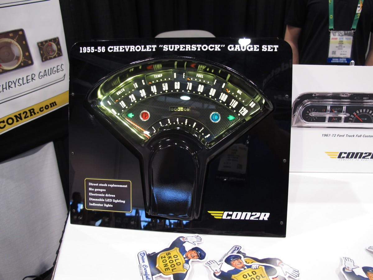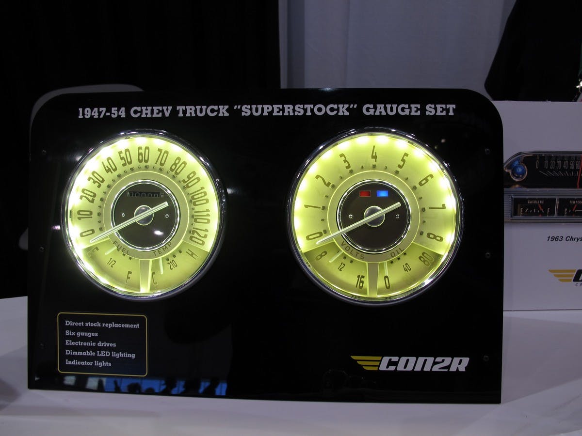 When it comes to adding aftermarket gauges to a classic, some guys like to use samples with a modern look, while others want to retain a nostalgic look. For you guys that prefer an original appearing gauge cluster that delivers on modernized ideas, Con2r (pronounced contour) gauges has the answer to your prayers. We saw some of their clusters at the SEMA show, and knew that you guys would be as interested as we were. We spoke with Bob Peterson of Con2r, and he said, “When we started this, our standard was that it had to look like it could have come from the factory”