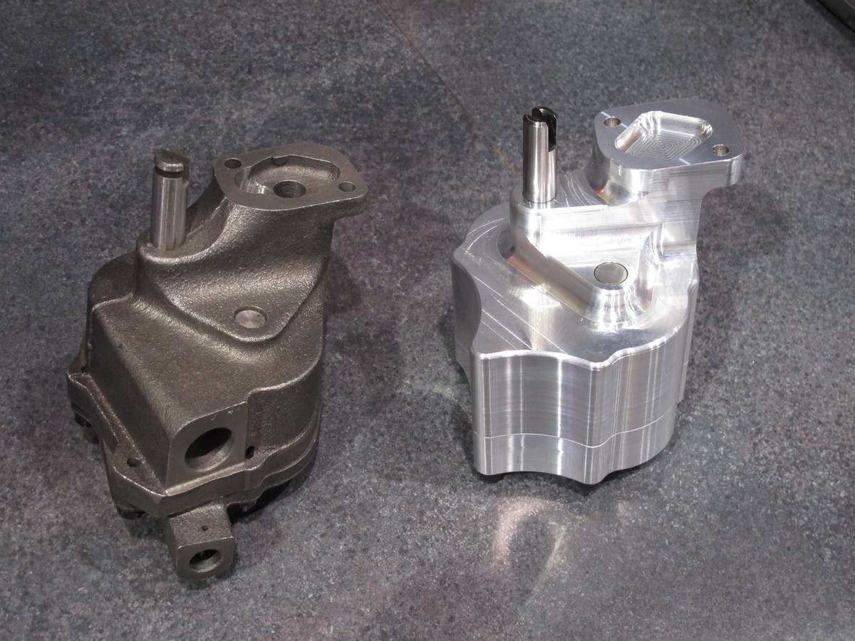 The first thing Ken Sink of Milodon told us was, “We’re really proud of our new two-piece billet oil pump for the big-block Chevy. The input shaft has a roller bearing support, and the regulator is adjustable.” Ken was happy to tell us that their pick up tube is unlike many of their competitors, as it is positioned forward in the pan, directly behind a baffle. This means that during any braking situations, the oil is kept in the area where the pickup is located, and no oil starvation issues occur.