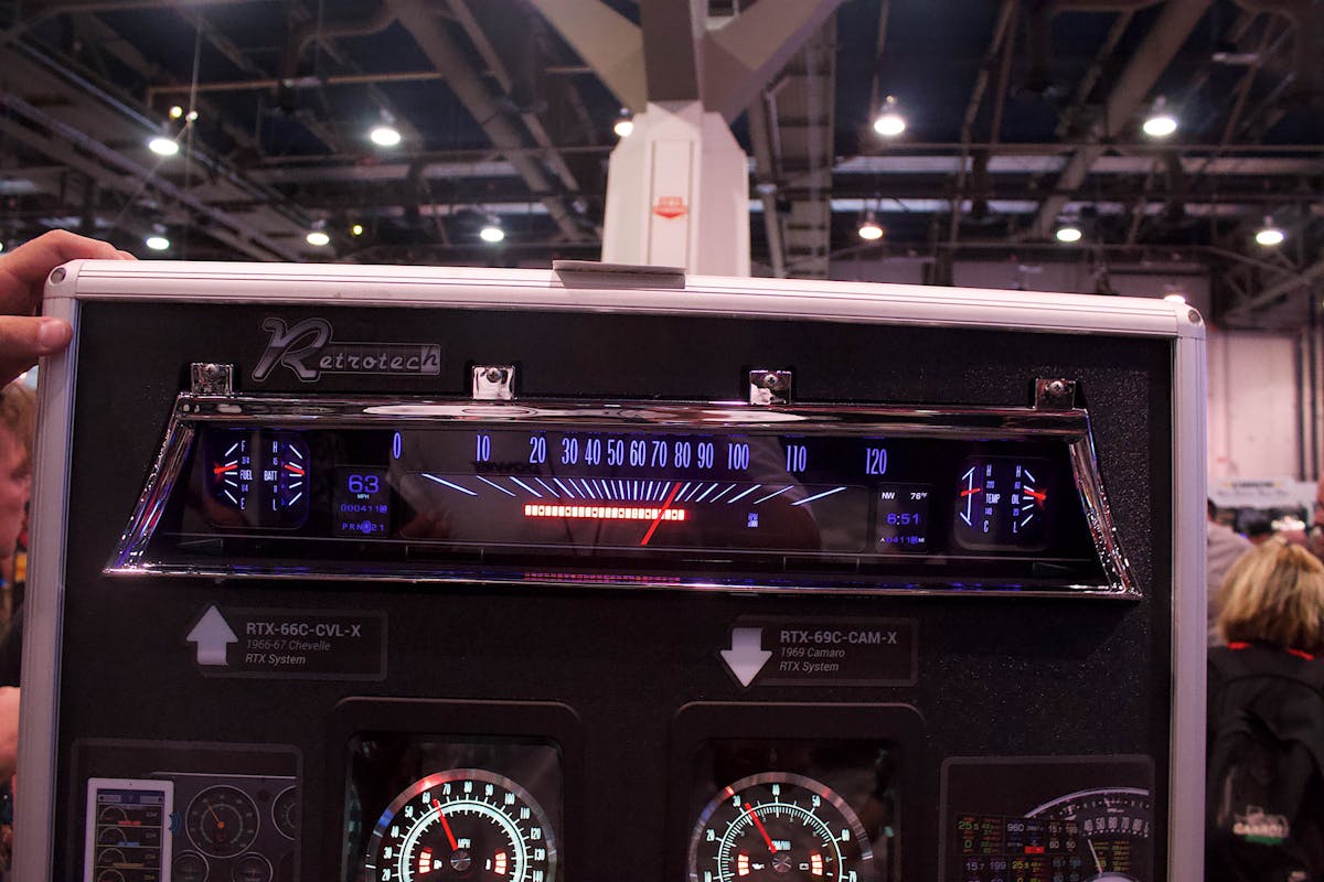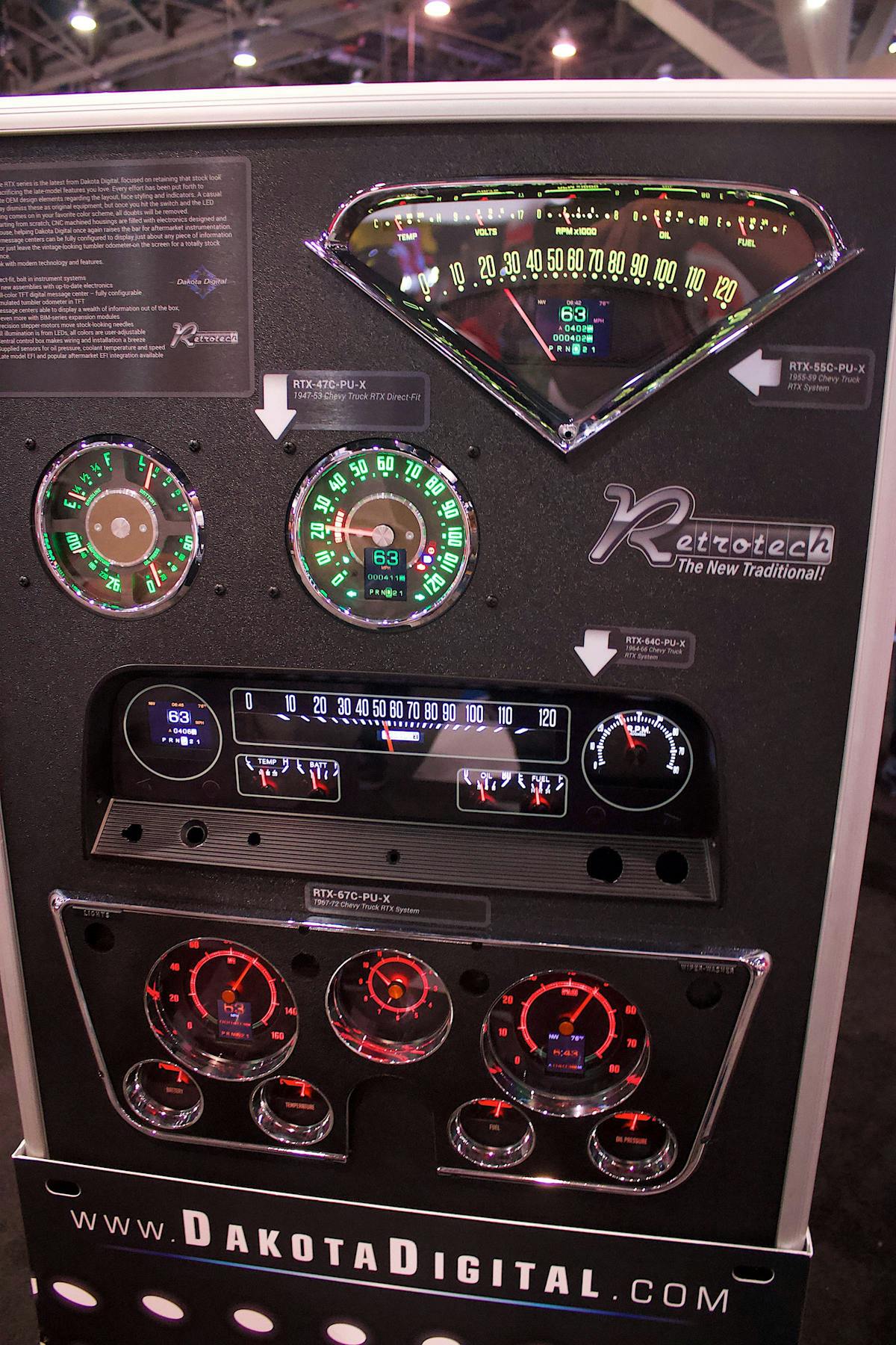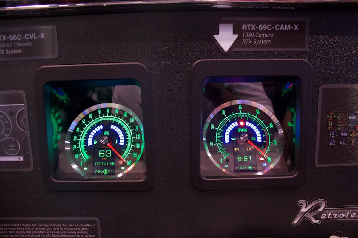 “The Retrotech series is designed to look like a factory-gauge package, but the reality is, when you hit the key, everything springs to life,” says Scott Johnson of Dakota Digital. “When the switch is on, in many cases, you have gauges that are hidden, but available. Plus, you have adjustability in terms of gauge colors and range.”