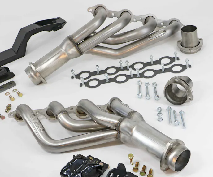 Designed to cohesively work together, this quality kit comes with a pair of  304 stainless steel, mid-length LS swap headers, Trans-Dapt’s F-body LS swap engine mounts and transmission crossmember, and a Hamburger’s LS swap oil pan. Installation hardware, gaskets, and exhaust adapters are also included. In short, everything you need to quickly and securely mount the LS engine without having to make major modifications to the vehicle is in the kit.