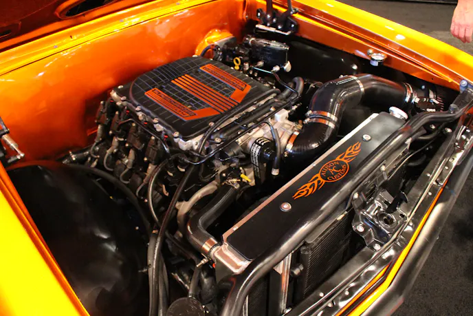 Scott Bowers from Ron Francis Wiring gave Rod Authority a walk-around on the floor at 2018 SEMA and filled us in with some details. “The car is a 1966 Chevelle sprayed with House of Color’s “Burnt Orange.” It’s running a supercharged LT4 Connect-and-Cruise from GM Performance backed up by a Tremec six-speed transmission. Of course, the car is wired with Ron Francis products.”