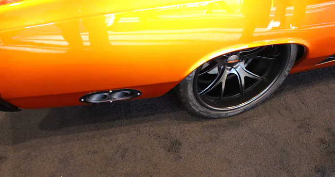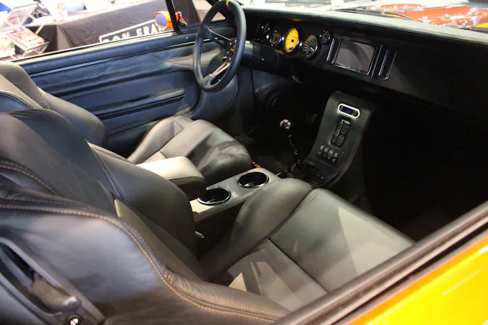Moving inside, we created custom bucket seating, a dash with the newest technology in stereo and instrumentation, followed up by a center console running all the way through the car.”