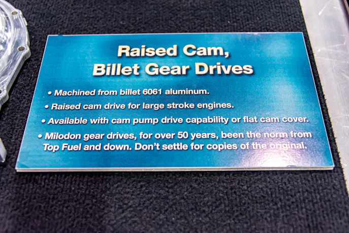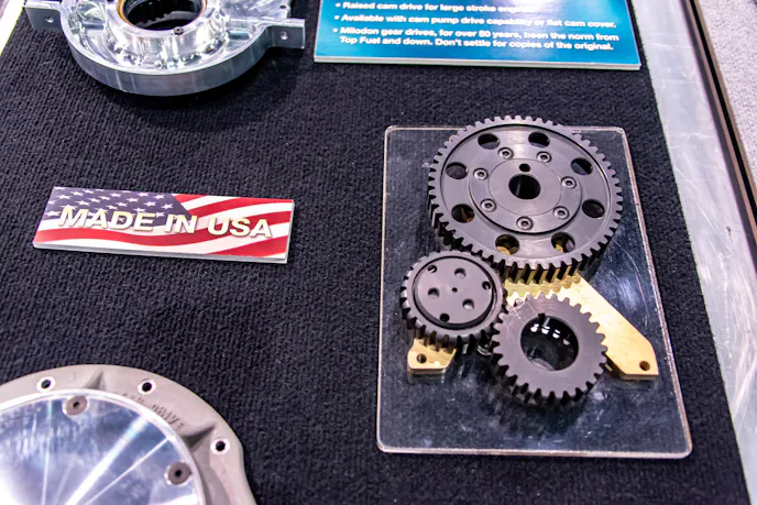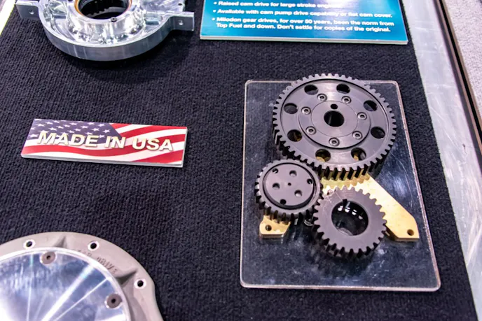Milodon employs what is called a fixed-idler gear drive, which mechanically links the crankshaft and camshaft with a trio of straight-cut gears (drive gear on the crankshaft, driven gear on the camshaft, and an idler gear in between to link them together). All of its gear drives are made in the USA!