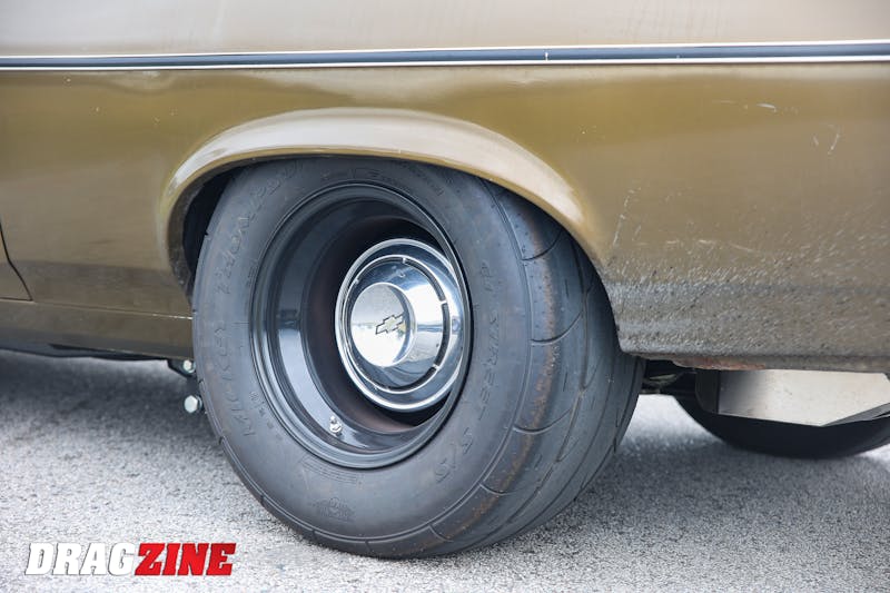Rinehart took the lead at his shop, Boosted By Rhino, and built Drew a healthy 327 cubic-inch LS engine. The OEM aluminum block is home to a stock rotating assembly along with a Texas Speed hydraulic roller camshaft. A set of Trick Flow GenX heads and Holley Mid Ram intake finish off the engine. The engine is controlled by a Holley Terminator X Max ECU and is tuned by Rinehart. This simple combination generates 750 horsepower and has laid down a best e.t. of 9.40 at 141 mph.