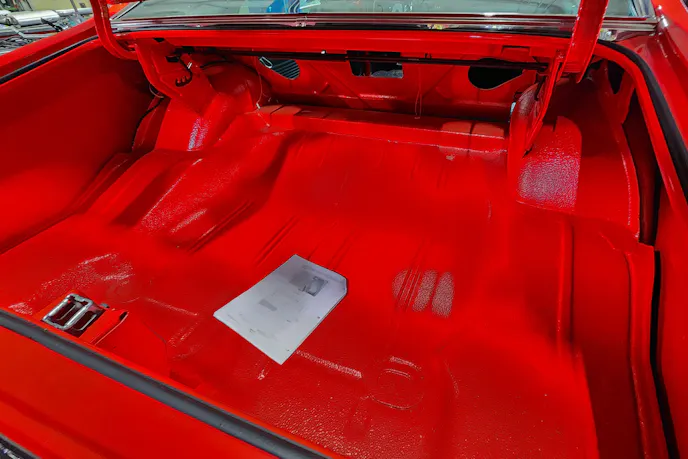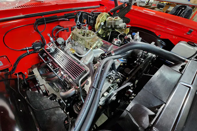 The original restoration immediately following the car’s purchase entailed a complete rotisserie restoration. The car initially had a freshly rebuilt small-block 350 engine and TH350 transmission. While the car’s body was still spinning on the rotisserie, the back side was treated with a set of mini-tubs, to help fit the widest tires possible. Disc brakes were added at every corner and with the bodywork completed, the car was painted and a complete interior installed.