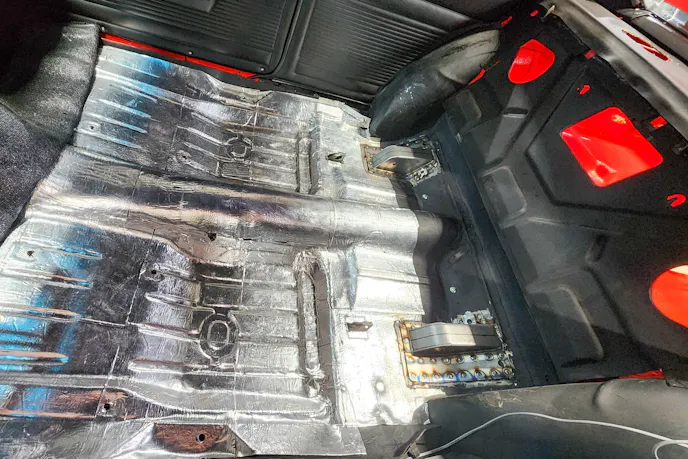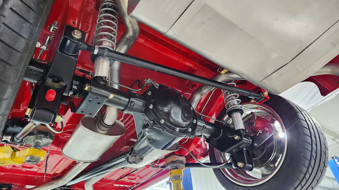 The bulk of the work done by the team at Prestige Motorsports focused on the new drivetrain. One of the company's 383 stroker engines was built and Detroit Speed's Quadralink rear suspension was added to the back of the car.