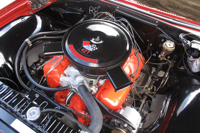 This very rare and well-documented four-speed Impala is one of only 1,800 full-sized Chevrolets built in 1966 with the L72 427/425 horsepower engine. It is also one of the very few to have survived the years of service it delivered while retaining the original powerplant and 12-bolt rearend. The car was restored many years ago and is still a stunning example of Chevrolet’s history. This upscale, Regal Red factory hot rod is fitted with a red cloth bench seat interior fitted with seat belts, tinted glass, a tilt steering column, and AM/FM radio. It has been featured in three national magazines and has won many awards, one of which is an AACA Championship, three Super Chevy awards, and a Best in Show. Documented with the original factory window sticker, owner’s manual, warranty booklet, and sales brochures.