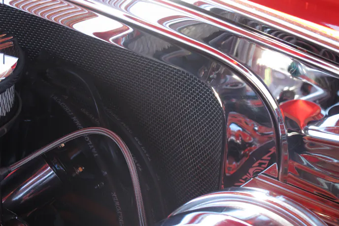As cool as the stock interior was—back in 1956—the factory feel just didn’t fit with Robert’s vision of the ultimate hot rod. To carry out what he planned in his head, he reached out to JMB Custom Interior in Canandaigua, New York. There, the two-tone-red Ultra leather was skillfully cut and sewn together to create a one-of-a-kind masterpiece.