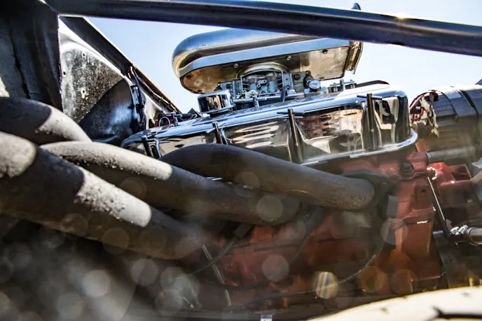 With the old six-cylinder engine gone, Kenney had room to give the little car more life. He achieved that by putting a 468 cubic-inch big-block under the the spot where the hood should be. With a 10.6:1 compression ratio, a .648-inch-lift roller camshaft, a lot of head work, over-sized valves, and roller rockers, it’s a nasty street monster.