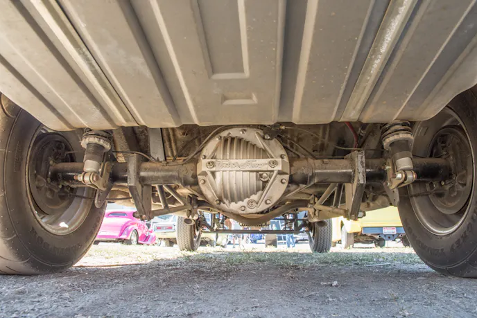 The first thing he did was tear out the old engine, transmission, and frontend. “I was able to sell that old stuff,” he said. “I put it on Craigslist, and some guy called, came over, and bought it all.” With the old stuff gone, Kenney slid a Speedway Motors straight axle front end with leaf springs underneath.