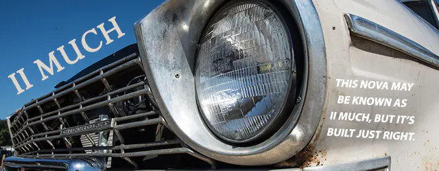 The gasser style is something we haven’t seen done all that often to an early Nova. The classic look of a gasser really brings out the personal style of the builder. It’s a great way to express their own interests and aesthetic taste. The gasser platform gives the builder ultimate freedom to create a high horsepower build in whatever way they want. This Nova is particularly unique, because the builder, Kenney Lohmeyer of Post Falls, Idaho, combined the gasser style with the patina look.