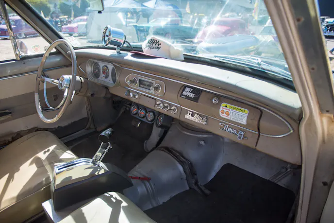The gasser style is something we haven’t seen done all that often to an early Nova. The classic look of a gasser really brings out the personal style of the builder. It’s a great way to express their own interests and aesthetic taste. The gasser platform gives the builder ultimate freedom to create a high horsepower build in whatever way they want. This Nova is particularly unique, because the builder, Kenney Lohmeyer of Post Falls, Idaho, combined the gasser style with the patina look.