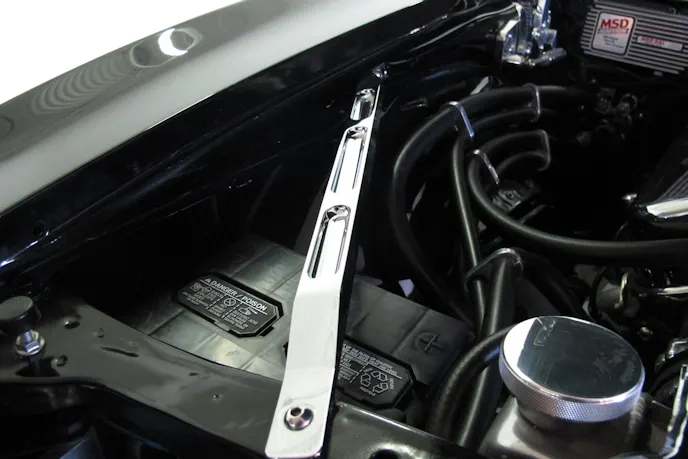 Having a lot of horsepower is great, but that power is useless if you don’t have the suspension to control it. That’s why Detroit Speed control arms and rear leaf springs are used. As you glance through the spokes of those great looking wheels, you also know that stopping is not an issue because you spied the Wilwood disc brakes on all four corners.