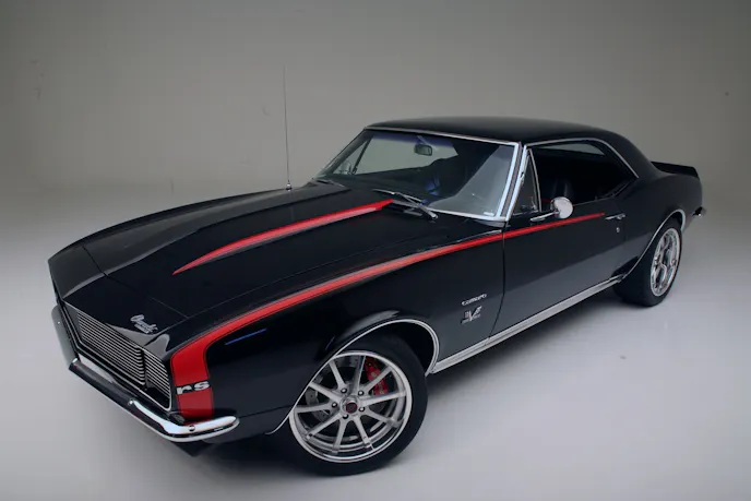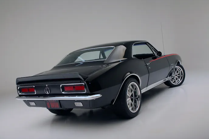 This first of the first-gen 1967 Rally Sport has been completely rebuild into a one-off restomod that definitely commands attention. The first thing you can’t help but notice is the mirror-like, Tuxedo Black exterior with red stripes. And although a ’67 Camaro never came from the factory with a cowl-induction hood, the fresh air fixture has become an aftermarket staple on many Chevrolet models.