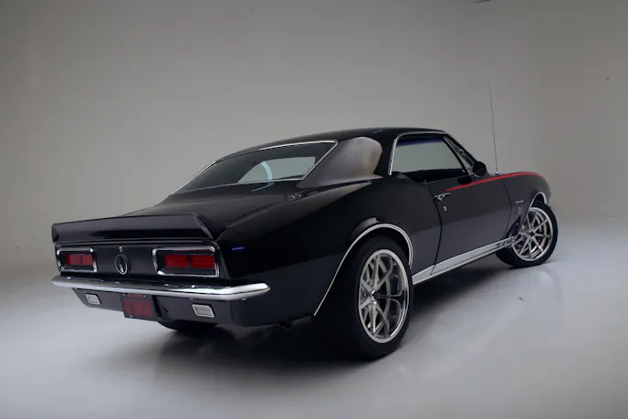 This first of the first-gen 1967 Rally Sport has been completely rebuild into a one-off restomod that definitely commands attention. The first thing you can’t help but notice is the mirror-like, Tuxedo Black exterior with red stripes. And although a ’67 Camaro never came from the factory with a cowl-induction hood, the fresh air fixture has become an aftermarket staple on many Chevrolet models.