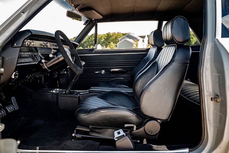 Although the body was in great shape, Kimber knew there would be some metalwork in the car’s future. That’s because an impending suspension upgrade would require some “subtle” body mods. “Although the body had no rust, with the help of a couple of friends, I installed a set of mini tubs because I knew a larger tire was going to be installed.” If you’re a fan of the Ceramic Matrix Gray paint that now covers the metal, kudos goes to Nostalgic Autobody in Island Lake, Illinois.