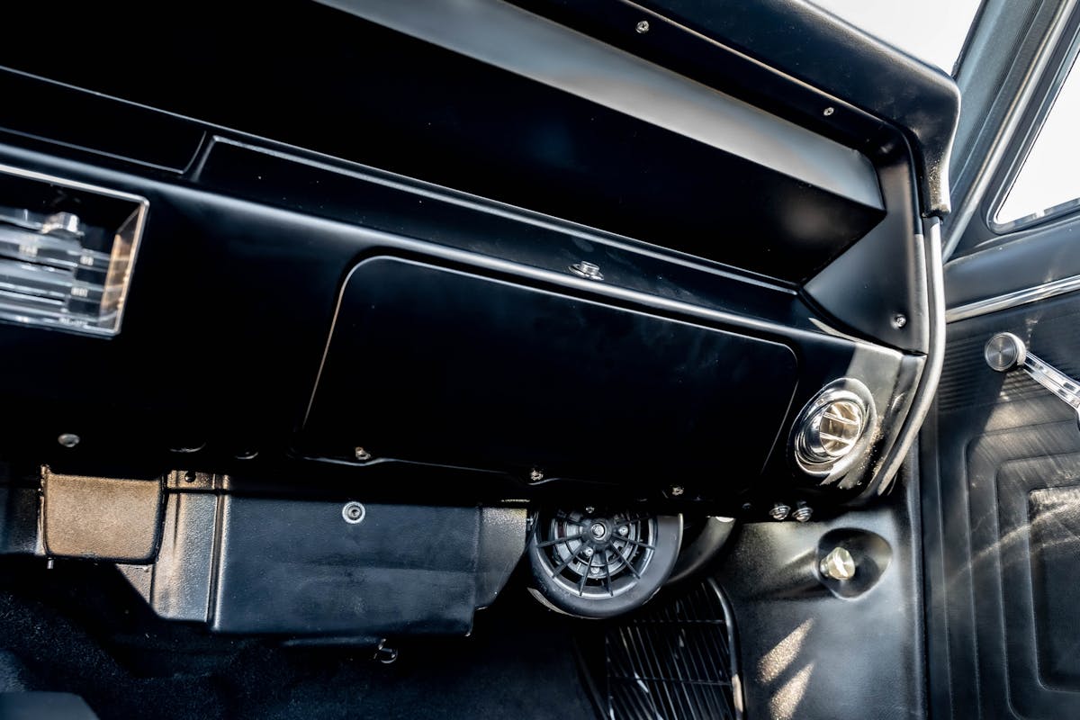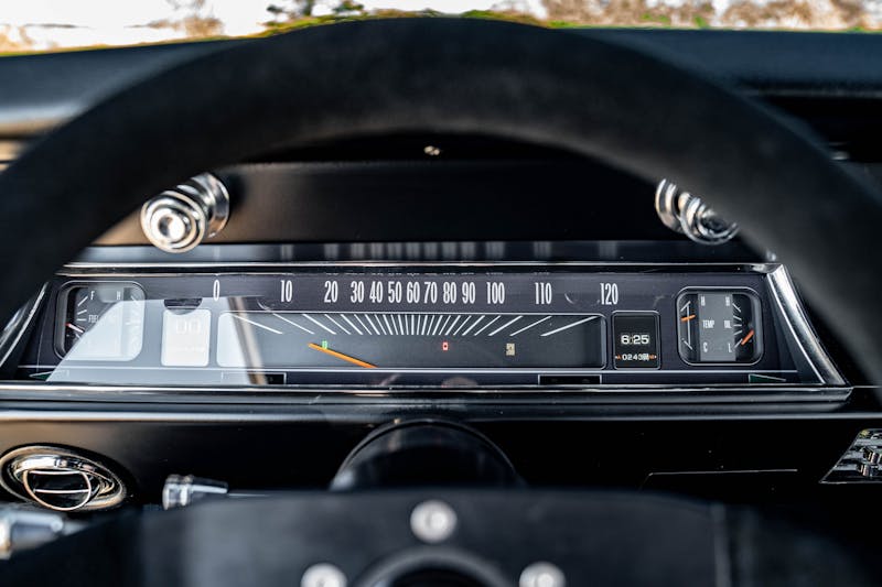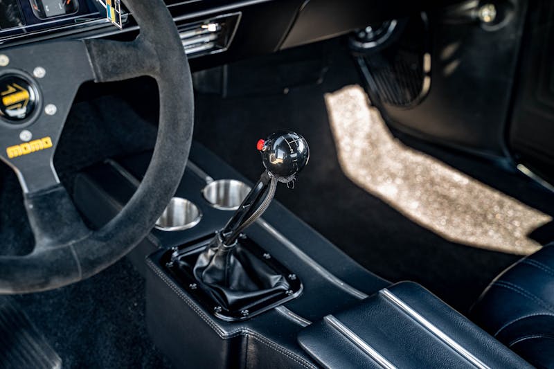 When Kimber lifts the hood, we immediately see 572 inches of large-by-huge, big block motivation. The build began with a Dart block that has been fitted with a SCAT crankshaft, 4340 H-beam connecting rods, and forged Wiseco pistons. Spinning in the middle of the block is a “mild” COMP Cams bumpstick with .566/.566-inch lift. Sealing the pistons within the bore is a set of Air Flow Research (AFR) aluminum heads to help create a very street-friendly 10.5:1 compression ratio. Kimber didn’t disclose any horsepower numbers, so I’ll go out on a limb and guess it’s somewhere between stock and holy crap! Behind the big mill is a TREMEC Magnum six-speed transmission.