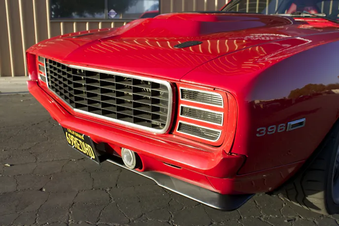 Directing exhaust flow out of the hearty big-block are a set of Patriot exhaust headers, with 1 7/8-inch diameter primary tubing, that are coated to retain the shiny silver appearance. These shorty headers are connected to a stainless steel exhaust, and flow through Dynomax and Magnaflow mufflers. Together, the mufflers struggle to keep the Camaro sounding street legal. Finally, the gasses flow through multi-vented exhaust tips mounted in the center of the rear valance to create a race car look.