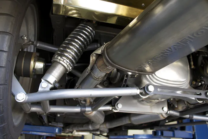 The Heidts IRS uses custom A-arms that attach to the Heidts-designed spindles, which support the Bonspeed 10×18 wheels. There is also a lot of room for the IRS behind the wheel-mounted 315/30R18 Falken tires. The massive wheel and tire package didn’t just bolt into place though, Derel and his team installed wheel tubs and even modified the frame to make enough room. The result is a perfect blend of suspension, tire, wheel, and traction.