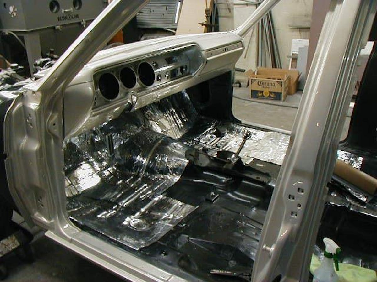 Around 2008, Jeff relinquished his stake in the build. However, he continued to contribute his talents to “Mordor.” While the body was off the frame, Jeff primered the Elco, and then big-cheese painter, Pete Santini, was brought in to spray the car a Ford hue dubbed Smokestone, a one-year-only color. With color applied, the body was lowered back on the frame, Dynamat was placed everywhere, and the doors were rehung.