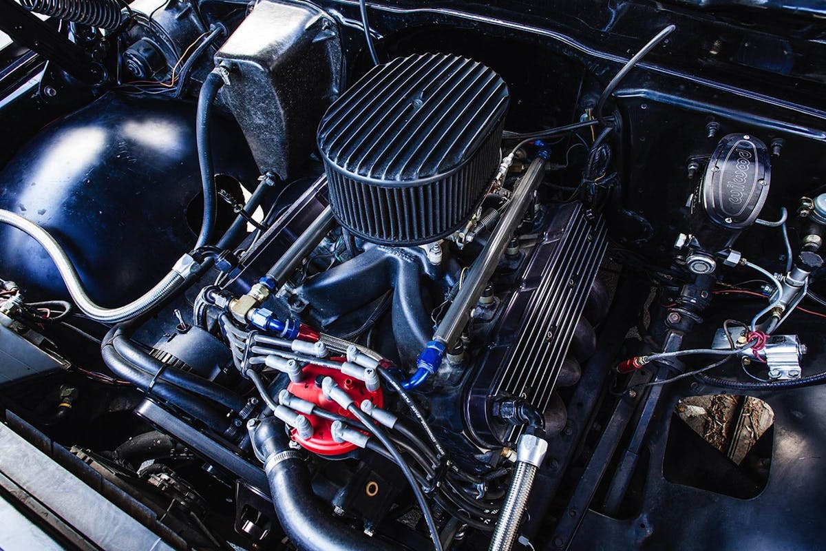 The rest of the drivetrain consists of a 4L85E automatic with a 3,500 RPM stall converter, with the 12-bolt from a ’68 Firebird holding up the rear, suspended by a Heidts four-link. The truck wears Mickey Thompson radials on the street, and Hoosier slicks for the dragstrip. Up front, the old hot rodder’s standby — a Mustang II independent suspension — keeps things rolling.