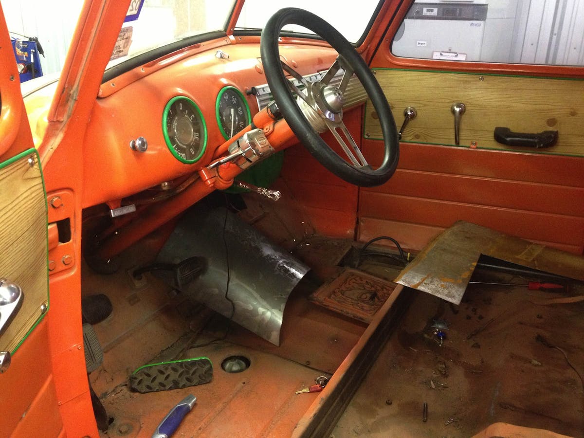 Burch’s resourcefulness in repurposing used parts doesn’t end with the mechanicals, though. Inside, he made custom brackets to mount a 60/40 split bench seat with a folding console out of the ’95-’99 model pickup, and the steering wheel is off a ’95. The finishing interior touch is the rearview mirror, which once graced a 2000 Camaro.